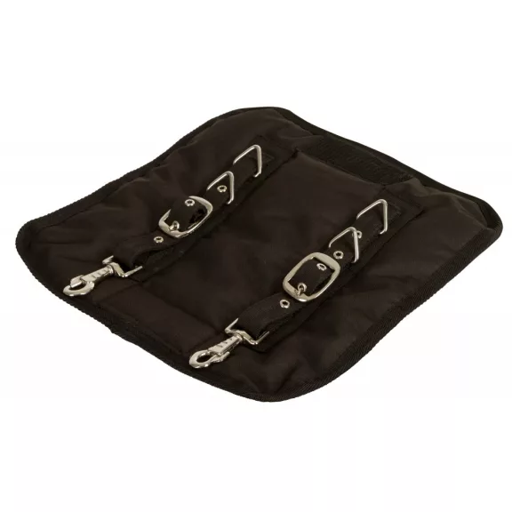 • két pánttal, karabinerrel és két-két D-gyűrűvel