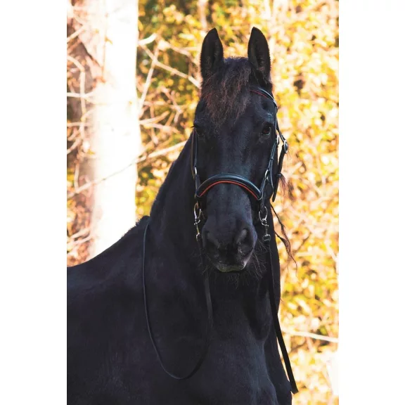 Kitűnő minőségű bőrből készült sidepull kantár. Színesen (narancs, bézs és szürke) alápárnázott orr és homlokszíjjal, állítható pofa, torok, és orrszíjjal. Karabíneres bőrszárral együtt szállítjuk. FRA skála szerint 3-as erősségű Rendelhető mini shetty, shetty, pony, cob, full, shire méretekkel, fekete színben, narancs, bézs, vagy szürke alápárnázással.